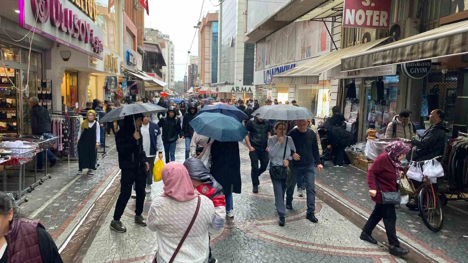 Aydın'da Ramazan Bayramı öncesinde alışveriş için dışarı çıkan vatandaşlar çarşı ve pazarlarda yoğunluk oluştururken, gün boyunca aralıklarla etkili olan yağmur vatandaşların alışverişine engel olamadı, özellikle tatlıcılarda uzun kuyruklar oluştu.