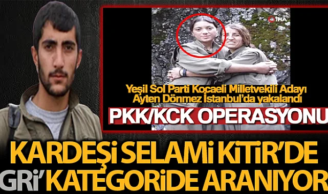 İstanbul’da bölücü terör örgütü PKK/KCK‘ya yönelik soruşturması çerçevesinde yakalanan Yeşil Sol Parti Milletvekili Adayı Ayten Dönmez’in, kardeşi Selami Kitir’in de "silahlı terör örgütüne üye olma" suçundan ‘Gri‘ kategoride arandığı ortaya çıktı.