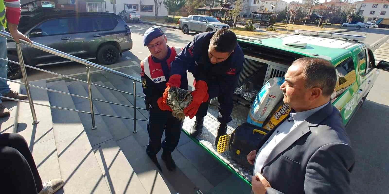 Kayseri'nin Bünyan ilçesinde yaralı halde bulunan puhu, Kayseri Doğa Koruma ve Milli Parklar Müdürlüğü'ne teslim edildi.