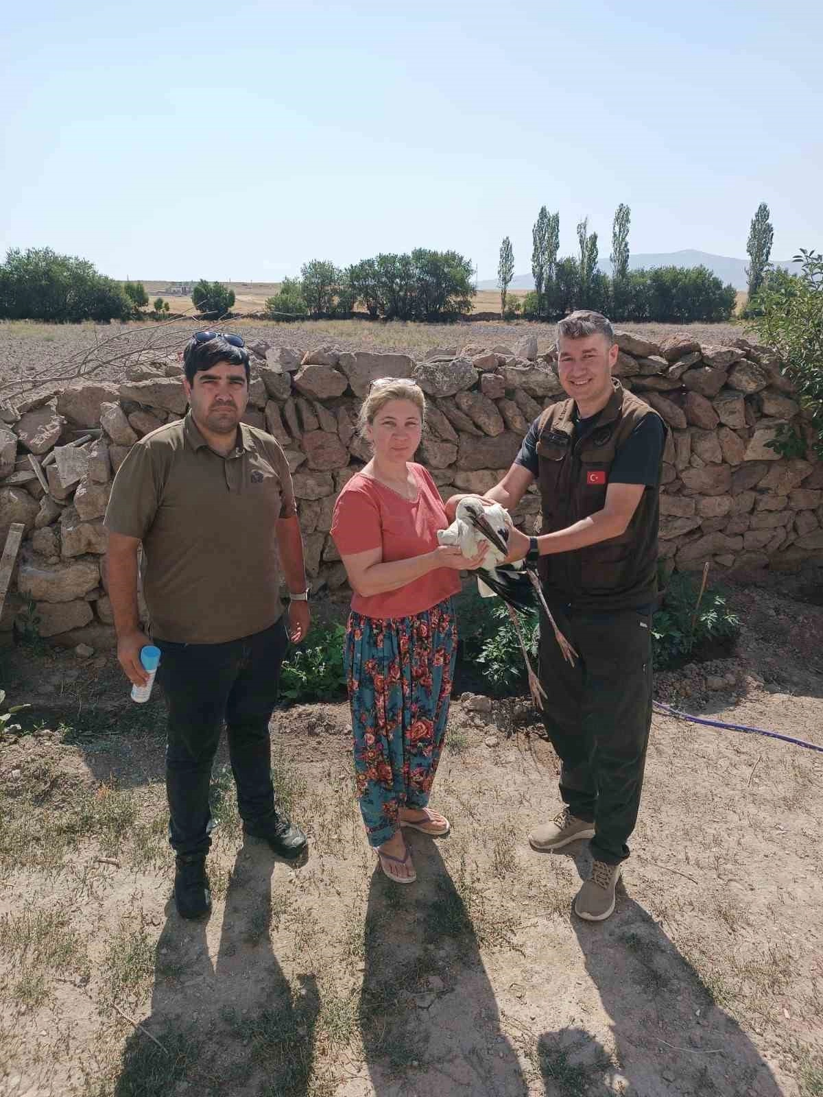 Kayseri'nin Develi ilçesinde yaralı halde bulunan leylek, Kayseri Doğa Koruma ve Milli Parklar Şube Müdürlüğü ekiplerine teslim edildi.