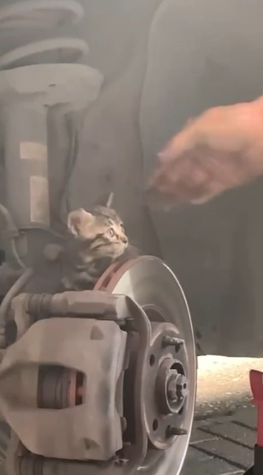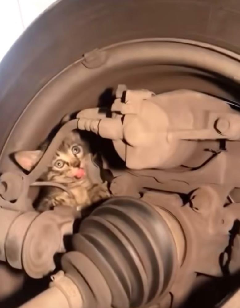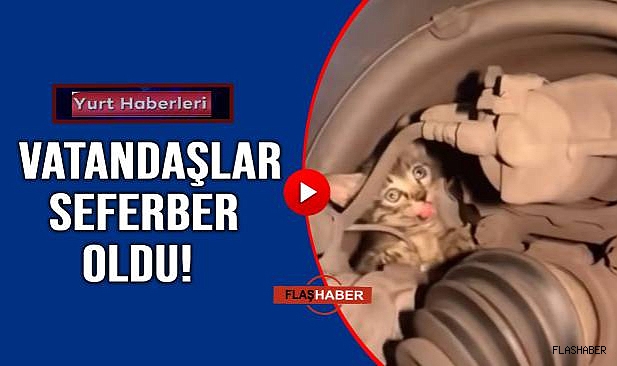 Bursa'da lastiğin içine giren yavru kediyi çıkartmak için vatandaşlar seferber oldu.