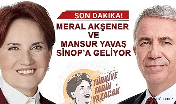 İYİ Parti Genel Başkanı Meral Akşener ve Ankara Büyükşehir Belediye Başkanı, Cumhurbaşkanı Yardımcısı adayı Mansur Yavaş 19 Nisan Çarşamba günü Sinop’a geliyor.