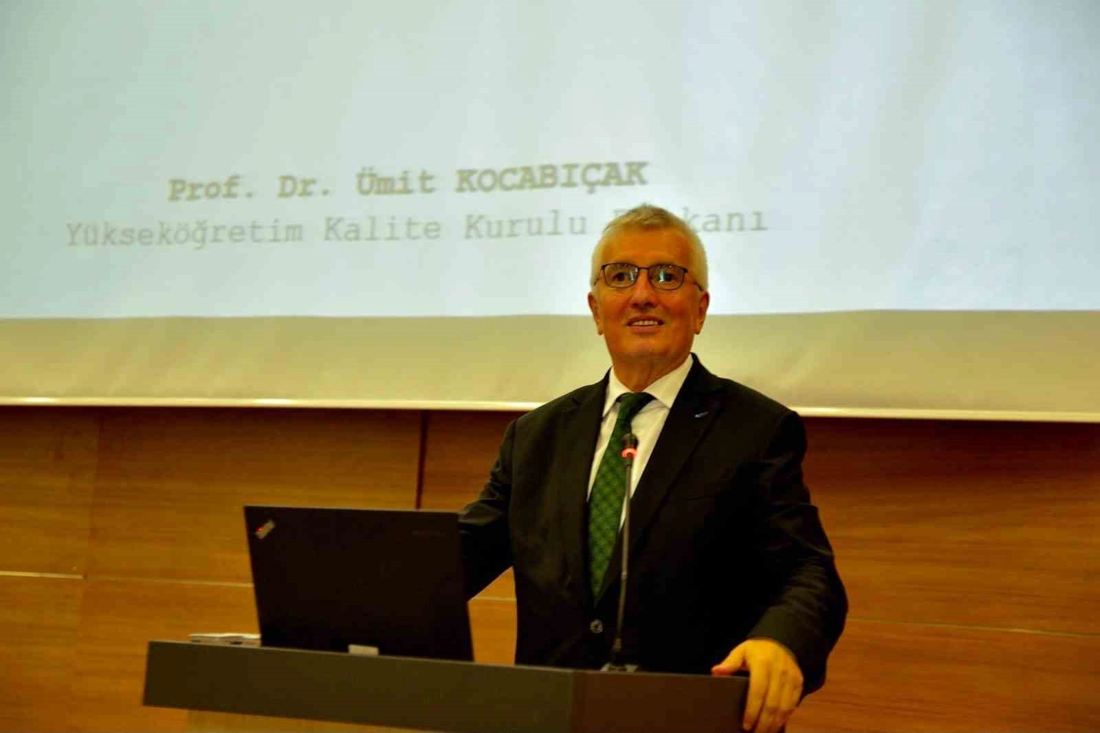 Türkiye'deki 208 üniversitenin 73'ünün kurumsal akreditasyon aldığını söyleyen Prof. Dr. Kocabıçak, yeni kurulan üniversiteler ile köklü üniversiteler arasındaki farkı kapatmak için kaliteye ve akreditasyona önem verdiklerinin altını çizdi. Eğitimde hesap verebilir olma, şeffaflık, iyileştirme ilkelerine göre kalite süreçlerinin değerlendirildiğini söyleyen Prof. Dr. Kocabıçak, üniversitelerde yapılan akademik faaliyetlerin topluma katkı sağlama etkisinin de kalite sürecinde öneminin artırılması gerektiğinin altını çizdi.