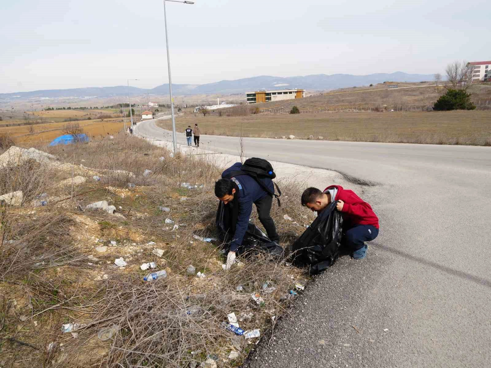 Kastamonu'da iki üniversite öğrencisi, yol kenarına atılan çöplerden rahatsız olarak harekete geçip 160 kilogramdan fazla çöp topladı.