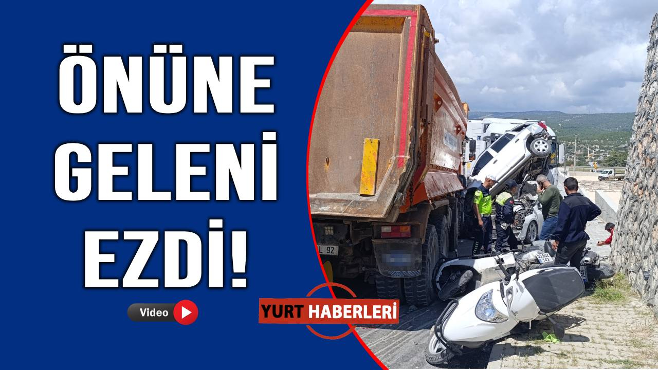 Mersin'in Silifke ilçesinde sürücüsünün direksiyon hakimiyetini kaybettiği kamyon, işçilerin park ettiği 13 motosiklete vurup, 2 otomobil ile bir tıra çarptı. Ucuz atlatılan kazada sürücü dahil kimse yaralanmadı.