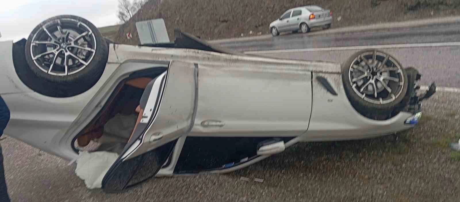 Yozgat'ın Akdağmadeni ilçesinde takla atarak refüje savrulan lüks araçtaki 3 kişi yaralandı.