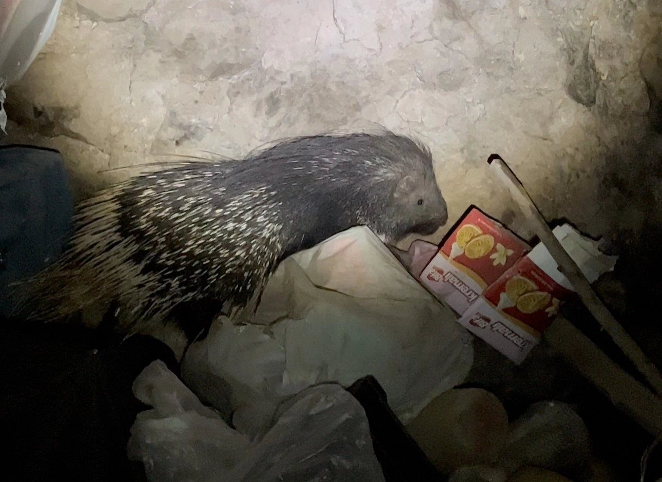 Hakkari'nin Yüksekova ilçesine bağlı Yeşiltaş köyünde nesli tükenmekte olan Hint oklu kirpi görüntülendi.