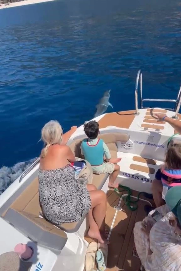 Fethiye'nin Ölüdeniz Mahallesi'nde, doğanın eşsiz güzelliklerinden biri olan Kelebekler Vadisi açıklarında eşsiz bir manzara yaşandı. Süfa Kökten'in kullandığı tekneyle denize açılan turistler, aniden beliren yunusların eşsiz gösterisine şahitlik etti. Yunuslar, teknenin etrafında dakikalarca adeta bir dans sergilerken, bu unutulmaz anlar teknedeki yolcular ve kaptan tarafından cep telefonlarıyla kaydedildi.