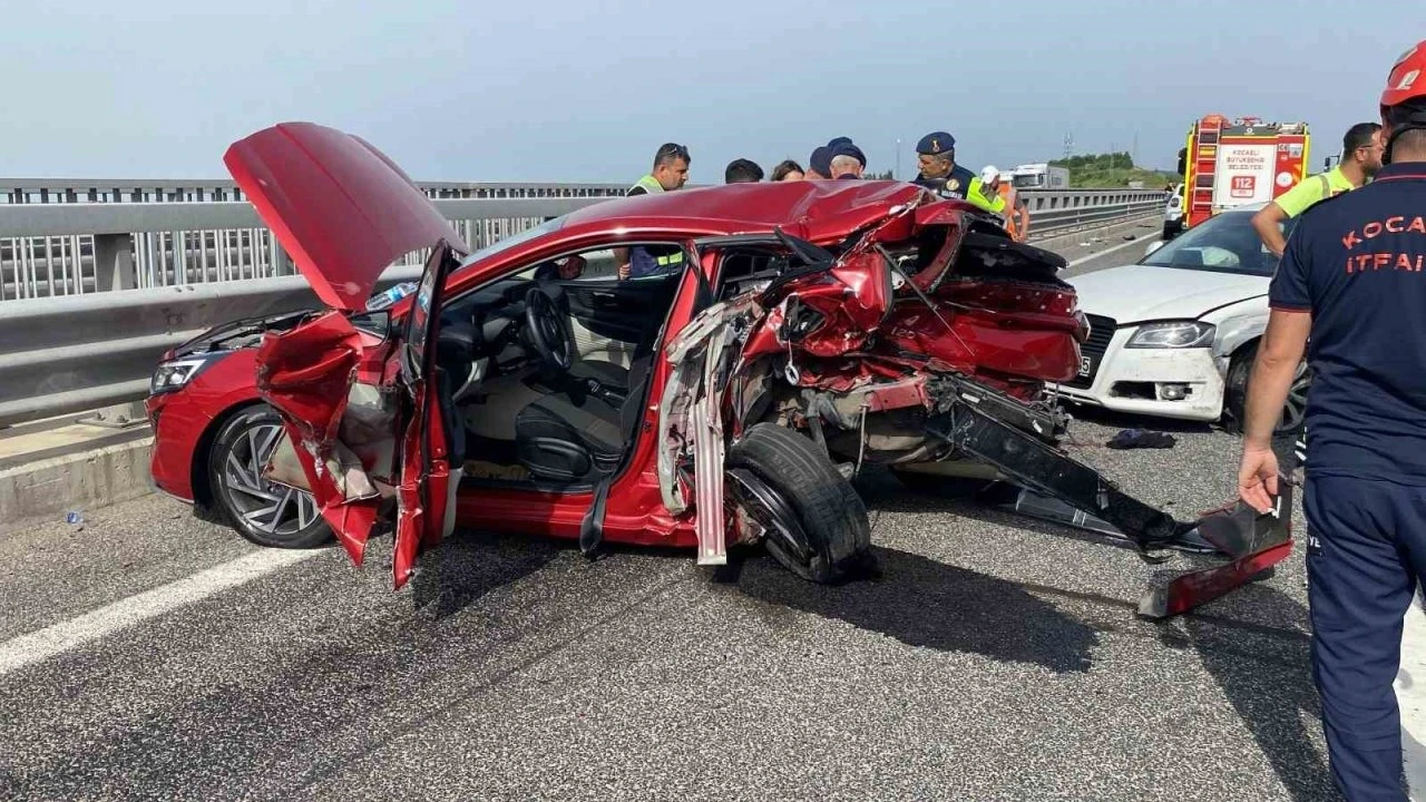 Kuzey Marmara Otoyolu Kocaeli geçişinde 3 aracın karıştığı zincirleme kazada 5 kişi yaralandı. Kazada Hyundai marka otomobil kağıt gibi ezilirken, hava yastıklarının açılmaması dikkat çekti.