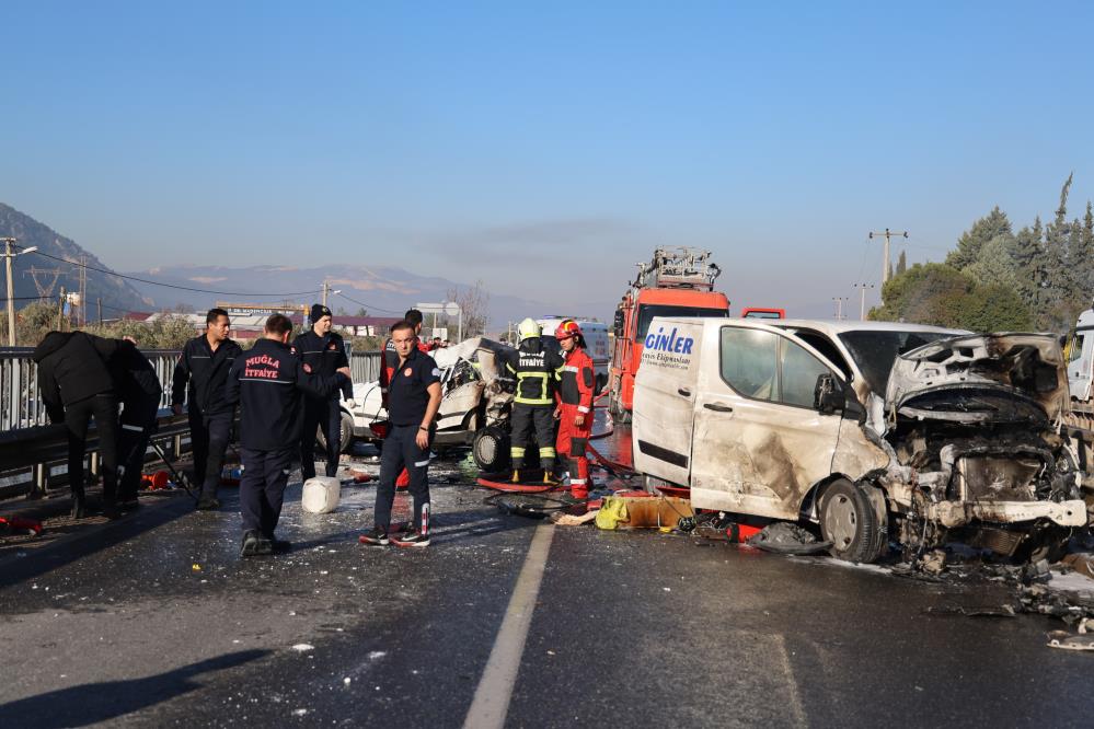 Kaza, saat 10.30 sıralarında Yatağan-Menteşe karayolu Bayır Mahallesi Akdere Köprüsü mevkiinde meydana geldi. Edinilen bilgiye göre, zincirleme trafik kazasında Menteşe yönüne giden 48 YS 746 ve Fiat marka 48 AEN 521 plakalı otomobiller ile 35 AOC 896 plakalı ticari araç birbirlerine çarptı. Kaza ihbarı üzerine bölgeye itfaiye, jandarma, polis, UMKE ve sağlık ekipleri sevk edildi. Olay yerine gelen itfaiye ekipleri 48 YS 746 plakalı araçta sıkışan 2 kişiyi kurtarırken, alev alan otomobil ve ticari araçtaki yangını da söndürdü. Kazada yaralanan 1'i ağır 7 kişi, olay yerindeki ilk tedavilerinin ardından Muğla'daki sağlık kuruluşlarına sevk edildi. Kaza sonrası karayolu savaş alanına dönerken, yol trafiğe kapandı. Karayolu üzerindeki ulaşım tali yoldan sağlandı. Kazayla ilgili soruşturma sürüyor.
